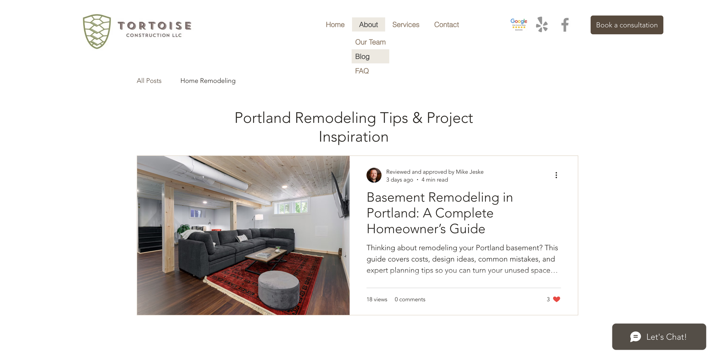 Blog Launch: Added a blog hub and published the first article, “Basement Remodeling in Portland: A Complete Homeowner’s Guide,” targeting a cornerstone keyword phrase.